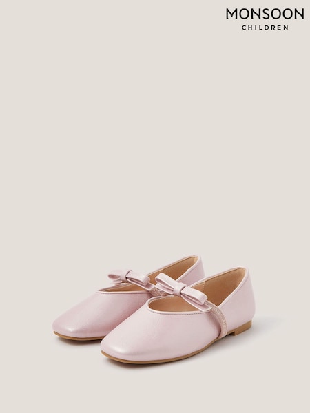 Monsoon Pink Pearl Strap Satin Ballet Flats