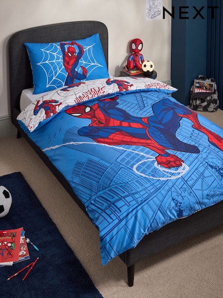 Blue Spiderman Cotton Duvet Cover and Pillowcase
