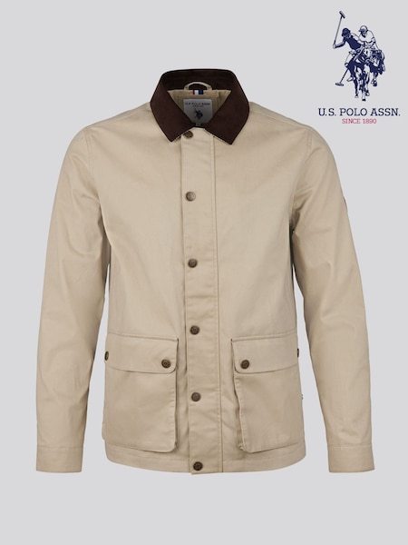 U.S. Polo Assn. Brown Mens 100% Cotton Twill Harrington Jacket