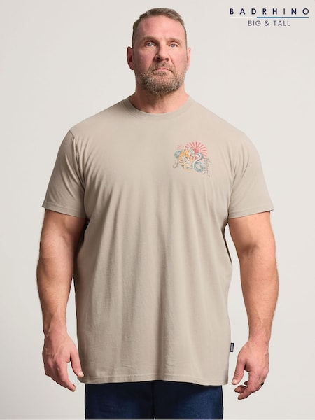 BadRhino Big & Tall Natural Longline Acid Wash Tiger Print T-Shirt