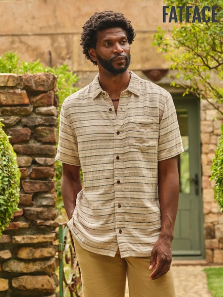 FatFace Natural Short Sleeve Textured Stripe Shirt