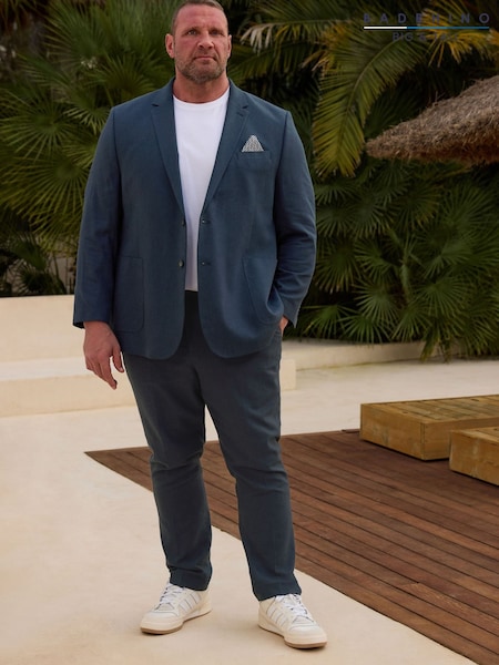 BadRhino Big & Tall Blue Long Linen Blend Suit Trousers