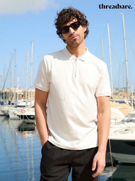 Threadbare White Pique Tipping Collar Quarter Zip Polo Shirt