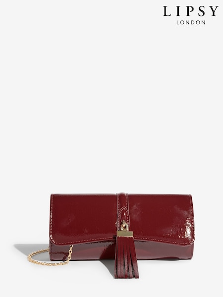 Lipsy Burgundy Red Tassel Trim Clutch Bag