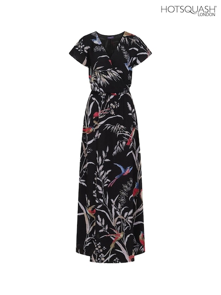 Hot Squash Elegant Mock Wrap Chiffon Maxi Black Dress