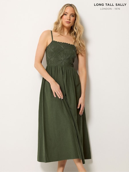 Long Tall Sally Green Linen Cornelli Midi Dress