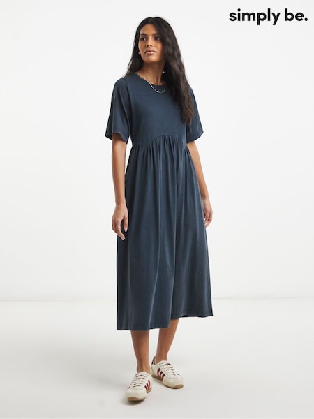 Simply Be Blue Jersey Linen Waist Detail Midi Dress