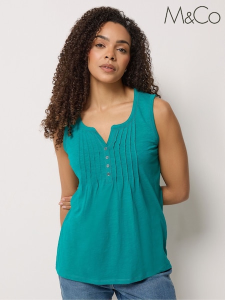 M&Co Green Cotton Sleeveless Henley Top