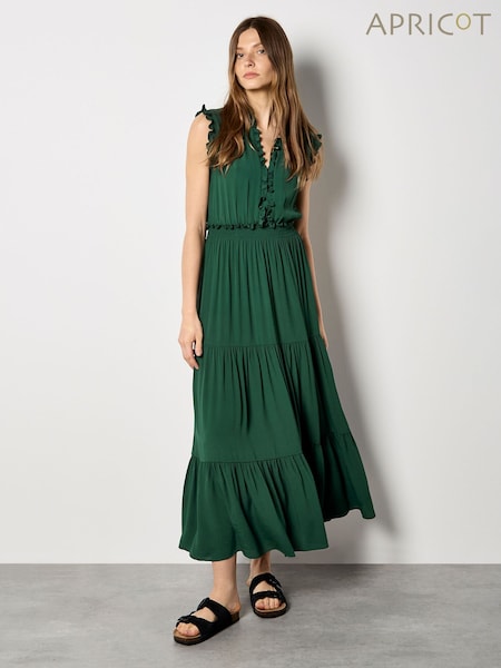 Yours Curve Green Contrast Swirl Tiered Maxi Dress