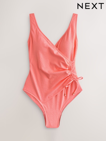 Coral Textured Ruched Side Tummy Shaping Control Swimsuit