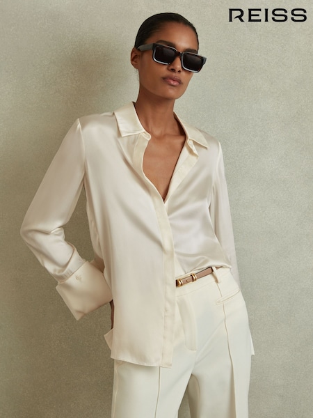 Reiss Ivory Hailey Silk Double-Cuff Button-Through Shirt