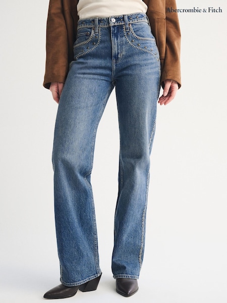 Abercrombie & Fitch Blue Corded High Rise Studded 90's Relaxed Jeans