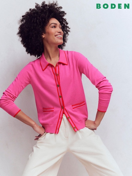 Boden Pink Liz Knitted Collared Cardigan