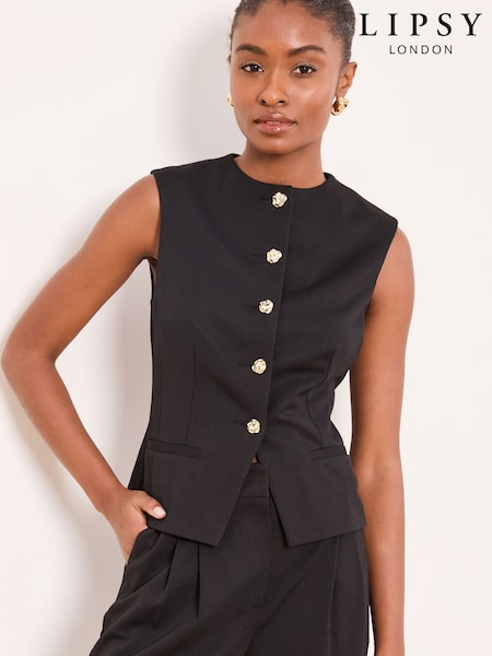Lipsy Black Tipped Buttoned Short Sleeve Knitted Top