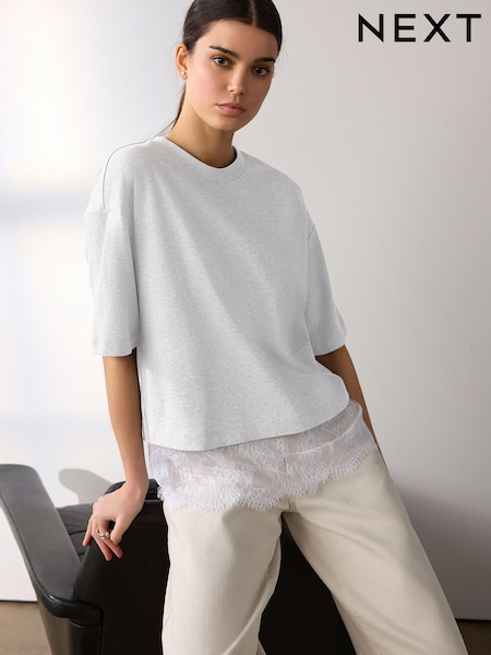 Grey Short Sleeve Lace Hem T-Shirt