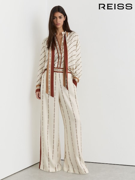 Reiss Ivory Lydia Petite Chain-Print Wide-Leg Trousers