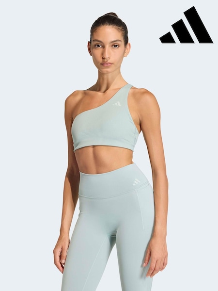 adidas Green Optime Workout Rib One Shoulder Light Support Bra