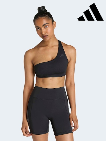 adidas Black Optime Workout Rib One Shoulder Light Support Bra