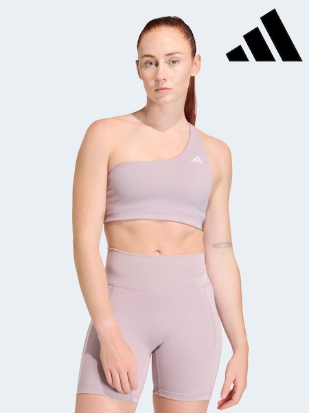 adidas Purple Optime Workout Rib One Shoulder Light Support Bra