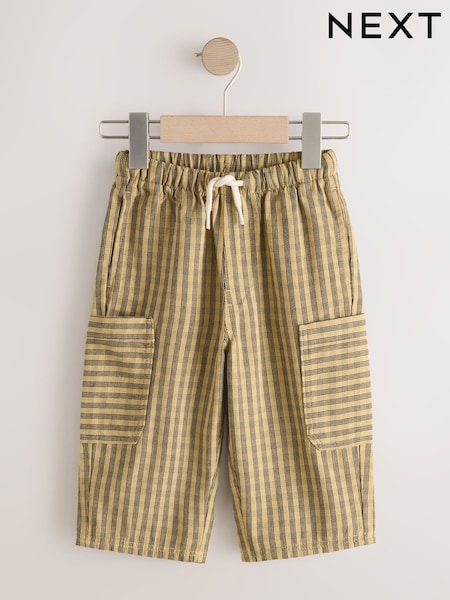 צבע צהוב/לבן בדוגמת משבצות שחמט - מכנסיים בגזרה רחבה ללא רכיסה (גיל 3 חודשים עד 7 שנים)