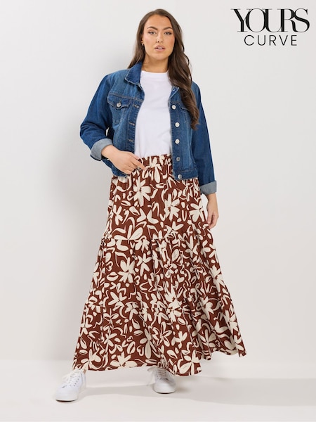 חום - Yours Curve חצאית מדורגת עם דוגמה אבסטרקטית