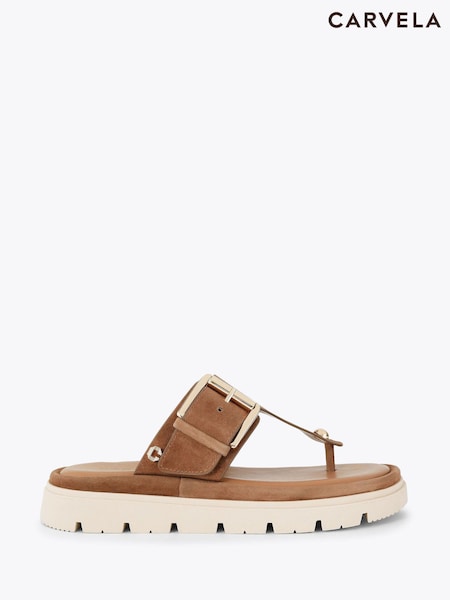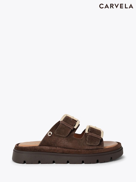 Carvela Comfort Brown Pavilion Suede Leather With Two Side Straps Sandals