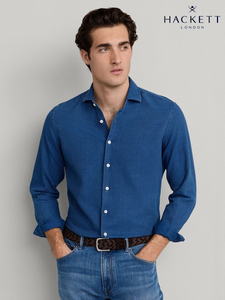 Hackett Tailored Fit Textured Denim Blue Shirt