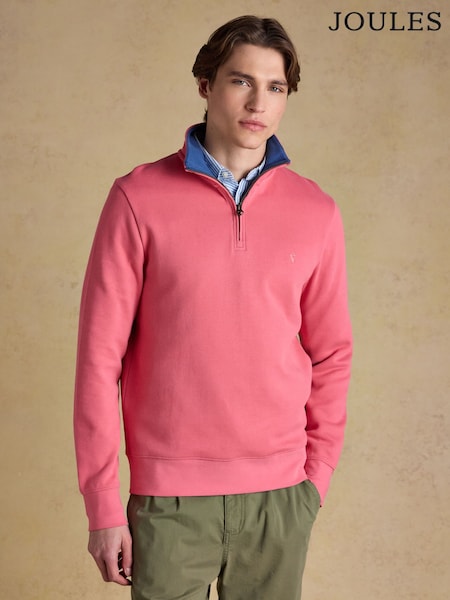 ורוד - Joules סווטשירט בד ריב צרפתי סרוג עם רבע רוכסן, דגם Alistair