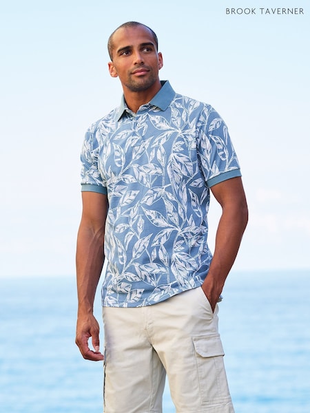 כחול - Brook Taverner חולצת פולו ג'רזי עם דוגמת עלי דקל