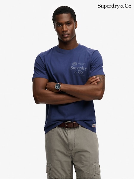 כחול - Superdry חולצת טי בגזרה נינוחה, דגם Company