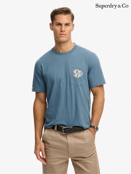 כחול - Superdry חולצת טי עם גרפיקה וכיס, דגם Merchant