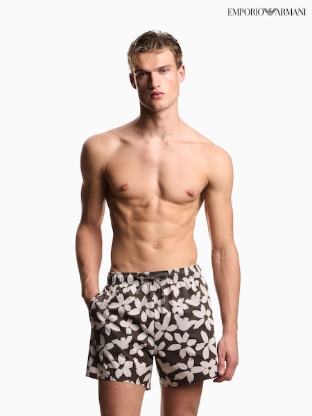 Emporio Armani White Flower Eagle Swim Boxer Swim Shorts
