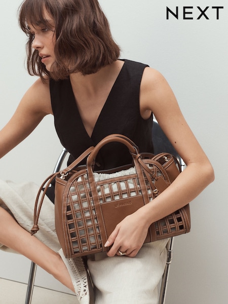 חום בהיר - תיק לנשיאה ביד עם עיטור חיתוך