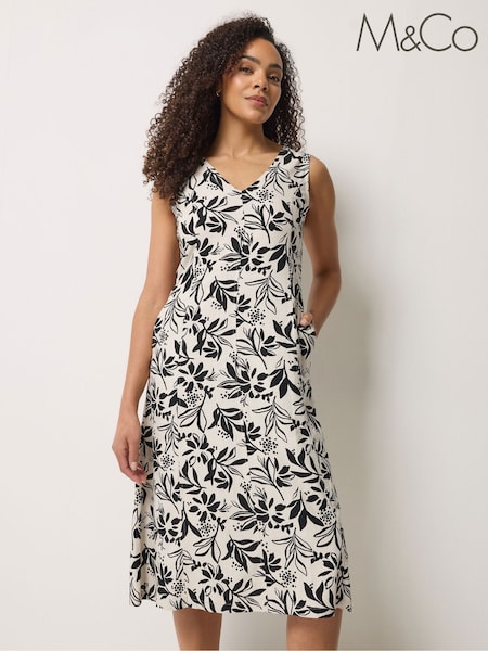 M&Co V-Neck Fit & Flare Linen Blend Dress