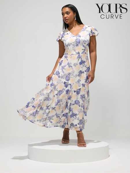 לבן - Yours Curve London Floral Godet Maxi Dress
