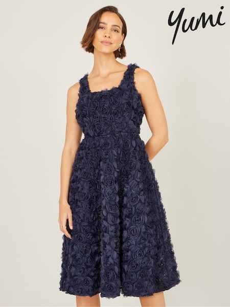 כחול - Yumi Appliqué Floral Skater Dress