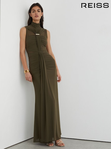 ירוק חאקי - Reiss שמלת מקסי ללא שרוולים בעיטור כיווצים, דגם Colette