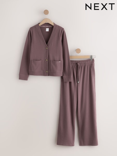 חום מוקה - Cosy Waffle Cardigan Loungewear Set