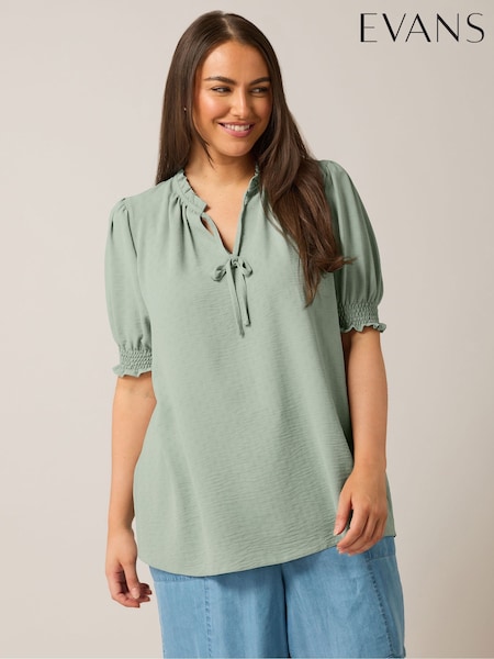 ירוק - Evans חולצה עם קשירה בצוואר ועיטור סלסול