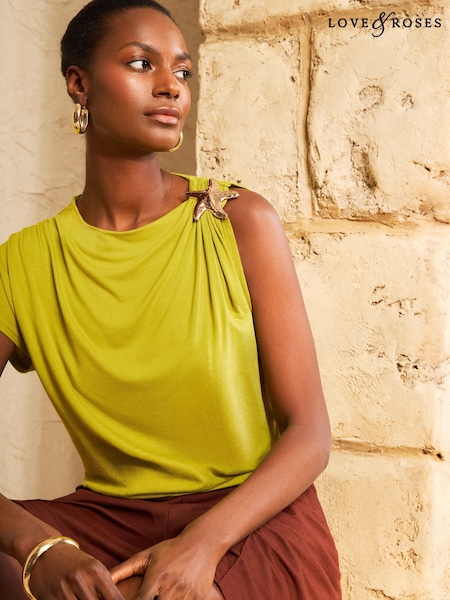 Lime Green Starfish Hardware Trim - Love & Roses Drape Jersey Top