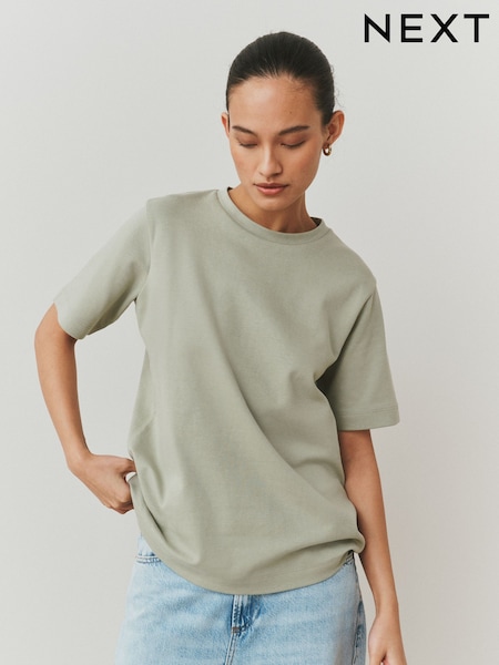 ירוק חאקי - חולצת טי מבד עבה עם צווארון עגול ושרוולים קצרים