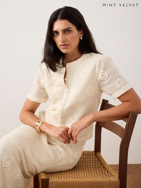 Mint Velvet חולצת קרושה מסיב כותנה בעיטור פייטים ופרח