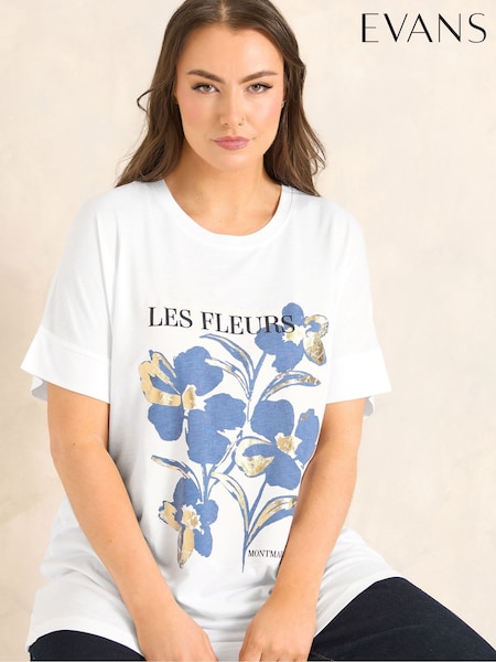 Evans חולצת טי בגזרת כתף קרה עם הדפס