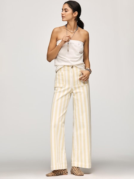 צהוב - Anthropologie מכנסיים בגזרה רחבה ובאורך מלא עם פסים, דגם Maeve The Colette