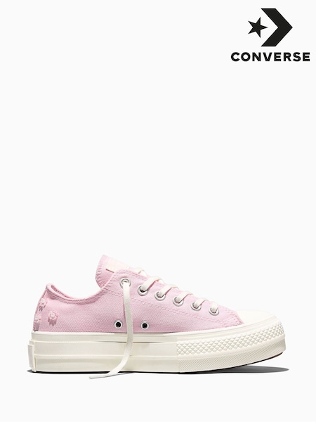 Converse נעלי ספורט נמוכות עם סוליית פלטפורמה באפקט מרים ועיטור חרוזים, סדרת Chuck Taylor