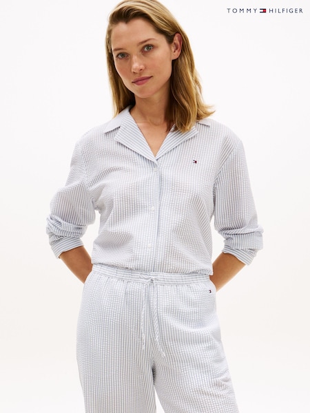 Tommy Hilfiger חולצת פיג'מה בייסיק מבד סירסאקר